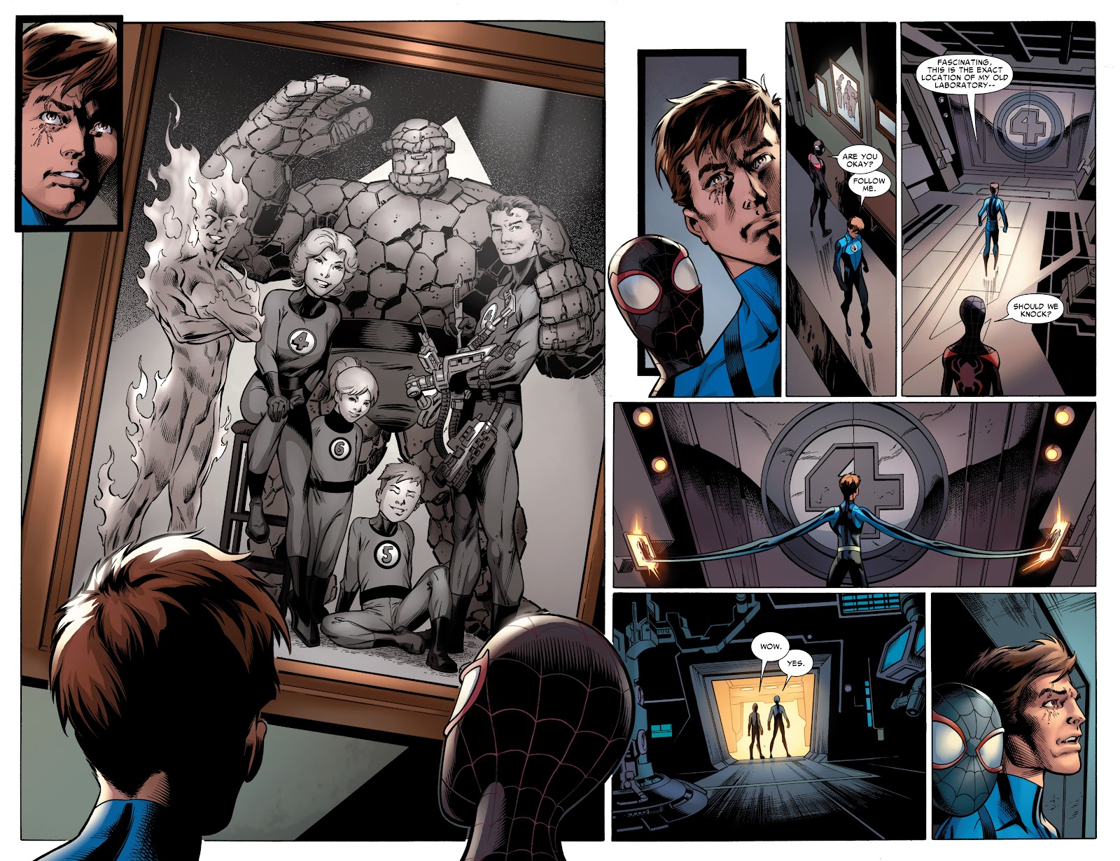 -Dos días antes en el Edificio Baxter se muestra en una computadora el diseño de una nave mientras T'Challa dice que se lo mejor que pudo despues de todo lo que pasó y Reed Richards alaba el diseño además de afirmar que aún con complicaciones menores podrán construirla. T'Challa dice que el solo resolvió el problema que le dio que es la manera de no perder pero Richards dice que esa fue la idea de su hija Valeria mientras ella come un helado les dice que ahora que resolverion el cómo sobrevivir al fin del Multiverso deben decidir a quién llevar. Richards dice que deben ver a la nave como un bote salvavidas y T'Challa explica que con el espacio limitado deben llevar científicos expertos en múltiples áreas pero Richards agrega que la prioridad deben ser los científicos genetistas más su material de trabajo para poder recrear a la humanidad. Richards se pregunta si en serio lo harán pero T'Challa que es la única opción ya que fallaron en salvar todo lo que existe.