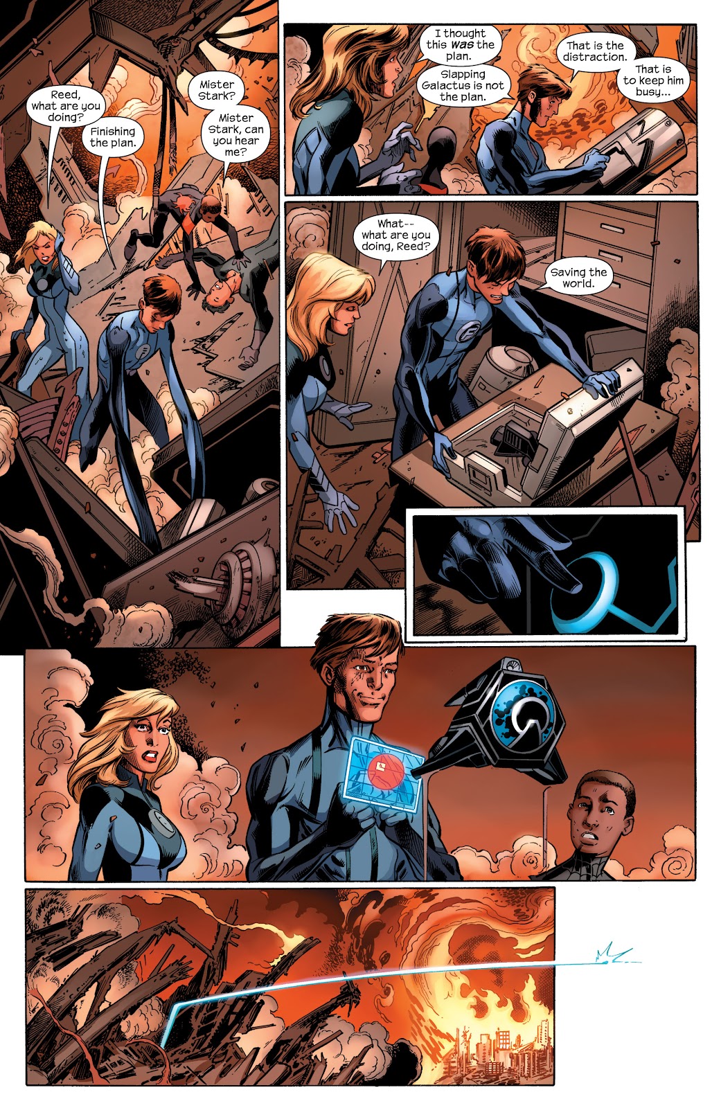 -The Illuminati tiene un plan para salvar a la Tierra que consiste en usar el Disco de control del Planeta Errante el cual está camuflado en la órbita terrestre. A pesar de algunas dudas de T'Challa sobre si funcionará Doc Green dice que no tienen así que lo activan usando al Planeta Errante como un escudo para proteger a la Tierra de los imperios galácticos. Ahora Doc Green y T'Challa preguntan cual es el siguiente paso y Richards dice que deben esperar a alguien. Minutos después Stark se comunica con Richards explicando que se convertirá en una luz que guíe en la medianoche como una llama que expulse la oscuridad y Richards entiende que se dirige en una nave directo al Sol para usar la superarma The Sol's Hammer. Stark se compara a si mismo con el mito de Ícaro pero Richards le dice en esa historia Ícaro cayó de los cielos al acercarse al Sol. Mientras Stark llega al Sol's Hammer responde que quien piense de esa forma nunca ha volado.